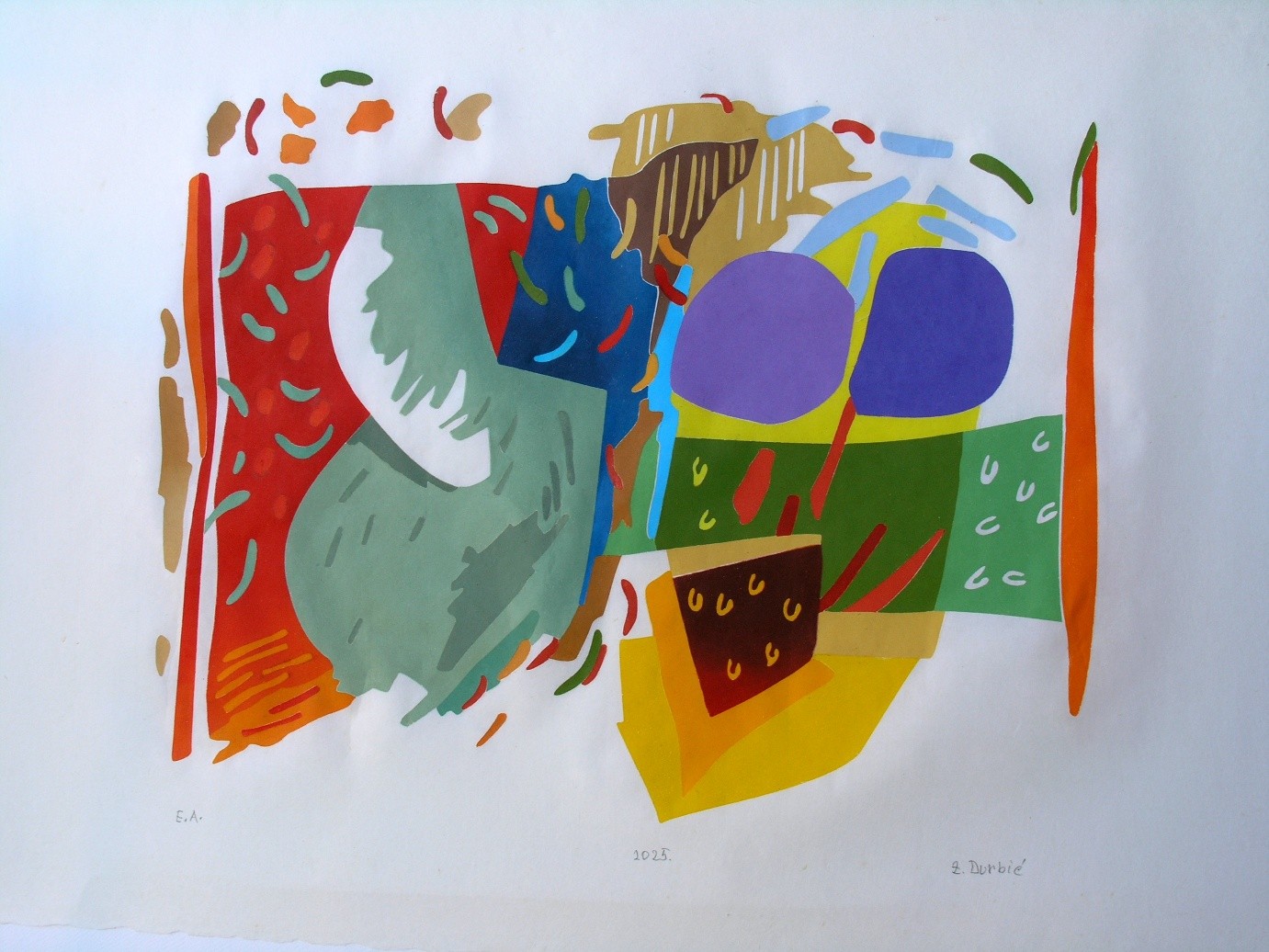 Barvni odtisi so neke vrste fragmenti, ki postanejo temeljni gradniki njegove likovne govorice. Grafike v svoji barvni in oblikovni pestrosti predstavljajo podobe, ki so skozi ritmične strukture in kontraste popeljane v ubranost in skladnost. Notranjo dinamiko ustvarjajo odnosi med barvnimi ploskvami, linijami in praznim prostorom. Komponiranje barvnih polj je intenzivno, vendar subtilno udejanjeno. Barve se srečujejo v kontrastu z njeno odsotnostjo, z belino, ki je govorica podlage, a stopajo tudi v odnos na relaciji toplo-hladno, svetlo-temno. Prav koloristična intenzivnost ter oblikovni vitalizem in poetičnost razkrivajo Durbićevo nezamenljivo ustvarjalno identiteto.